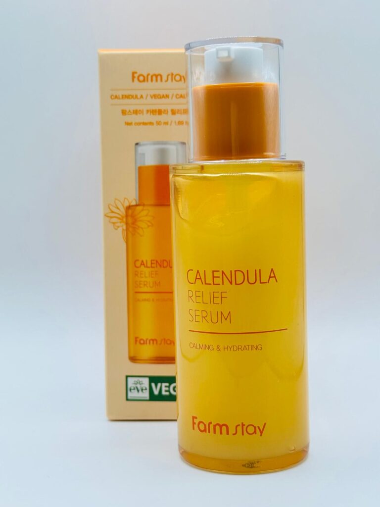 Farmstay Calendula Relief Serum – tai lengvas, greitai įsigeriantis serumas, sukurtas raminti ir atkurti jautrią, sudirgusią ar išsausėjusią odą. Formulės pagrindas – medetkų ekstraktas, žinomas dėl savo priešuždegiminių, raminamųjų ir atkuriamųjų savybių. Serumas padeda sumažinti paraudimą, tempimo jausmą ir suteikia odai švelnumo bei komforto.