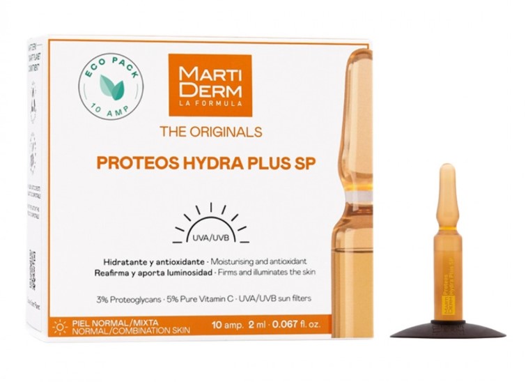 Intensyviai drėkinančios ir stangrinančios ampulės su proteoglikanais ir vitaminu C. Proteos Hydra Plus SP – tai vienos populiariausių MartiDerm ampulių, sukurtos suteikti odai intensyvų drėkinimą, skaistumą ir apsaugą nuo pirmųjų senėjimo požymių. Formulė su proteoglikanais ir grynu vitaminu C akimirksniu suteikia odai švytėjimo, o reguliariai naudojant oda tampa lygesnė, elastingesnė ir vizualiai pailsėjusi.