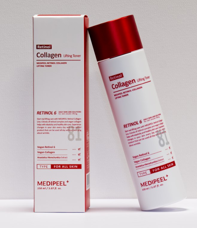 Jauninantis tonikas su 6 tipų retinoliu, kolagenu ir peptidais – stangrina, skaistina ir mažina raukšles. Medi-Peel Retinol Collagen Lifting Toner – tai veganinis tonikas, sukurtas brandžios, pavargusios ar elastingumą praradusios odos priežiūrai. Dėl pažangios formulės su 6 tipų retinolio kompleksu, kolagenu ir peptidais, tonikas padeda sumažinti raukšles, pagerinti odos stangrumą ir suteikti jai skaistumo. Tonikas yra kliniškai išbandytas, tinkamas jautriai odai ir puikiai tinka kaip pirmasis žingsnis anti-aging rutinoje.