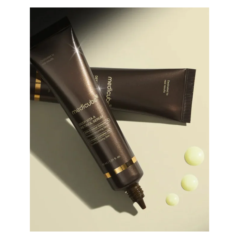 Medicube Deep Vita A Retinol Serum – tai galingas naktinis serumas, sukurtas odos atsinaujinimui, stangrinimui ir skaistinimui. Sudėtyje esantis 1 % retinolio kompleksas kartu su bakuchiolu (augaliniu retinoliu) ir niacinamidu padeda mažinti raukšles, pigmentines dėmes, aknės žymes ir pagerina bendrą odos tekstūrą.
