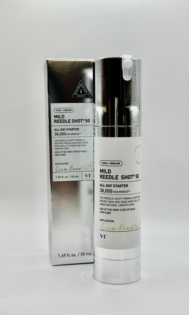 VT Cosmetics Mild Reedle Shot 50 — tai modernus odos atnaujinimo kremas‑serumas, sukurtas su natūraliomis mikroadatėlėmis iš jūros kempinės (CICA Reedle). Jos švelniai stimuliuoja odą, skatina regeneraciją ir padeda veikliosioms medžiagoms įsigerti giliau, suteikdamos pastebimą glotnumo ir skaistumo efektą.